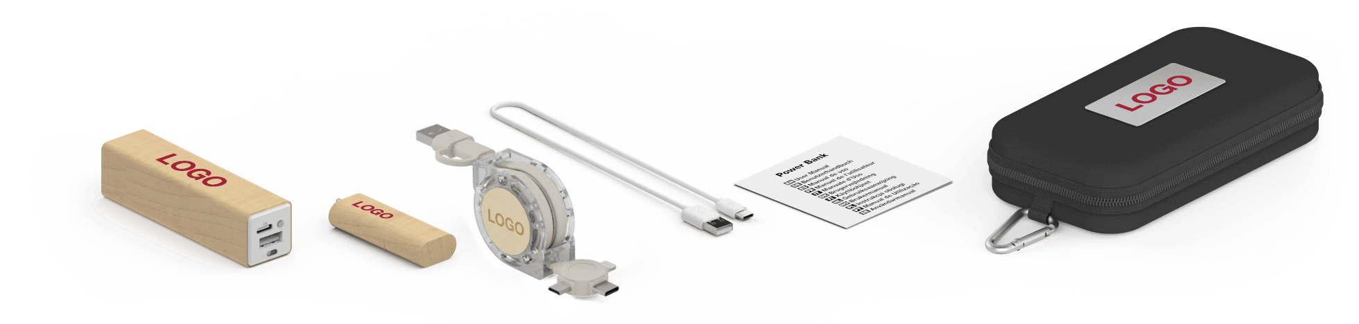 Combinez 3 produits dans un coffret cadeaux de voyage pratique: Nature Clé USB, Maple Power Bank, Motion Wood Câble USB. Les produits soigneusement rangés à l'intérieur peuvent être marqués de votre logo, de votre site internet, de votre slogan et plus. Le dessus du coffret Cadeau peut aussi être gravé au laser ou Sérigraphié jusqu'à 4 couleurs. Vous pouvez combiner les couleurs des different produits à souhait.