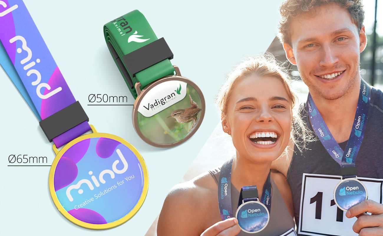 La Elite est une médaille personnalisée haut de gamme conçue pour mettre en valeur votre marque ou votre événement avec audace et raffinement. Elle bénéficie d'une impression photo de haute qualité qui donne vie à votre motif grâce à des détails nets, des dégradés harmonieux et une reproduction éclatante des couleurs. Au centre de la médaille se trouve une zone réservée à votre marquage, où votre logo ou votre illustration est mis en valeur avec clarté et précision. Le cordon fourni peut également être personnalisé. Le motif de la médaille est protégé par un revêtement en résine transparente, qui lui confère une finition polie et brillante tout en la protégeant des rayures et de l'usure. Les médailles Elite sont disponibles en deux tailles – 50 mm ou 65 mm de diamètre – ce qui vous permet de choisir celle qui convient le mieux à votre événement. Vous pouvez également choisir entre des finitions or, argent ou bronze, ce qui les rend idéales pour récompenser les 1re, 2e et 3e places.