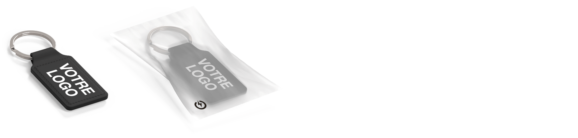 Toute la partie cuir de la clé peut être gravée grâce au processus d’embossage. Aussi appelée gauffrage, cette technique permet de créer des zones en reliefs et enrichit la technique du tamponnage en donnant un effet brillant au motif en repoussant le cuit grâve à un petit stylet. Cependant, cette technique de marquage en 3 dimensions n’est pas adaptée aux logos composés de détails très fins ou de petite taille. Tous nos tarifs incluent le marquage en ambossage recto/ verso. Pour réaliser des maquettes virtuelles et mieux appréhender le rendu de cette technique, il vous suffit de télécharger vos éléments e marquage au format eps ou ai… Toutes Les polices doivent être converties en contours et toutes les couleurs être pleine – pas de nuances ni de dégradés.