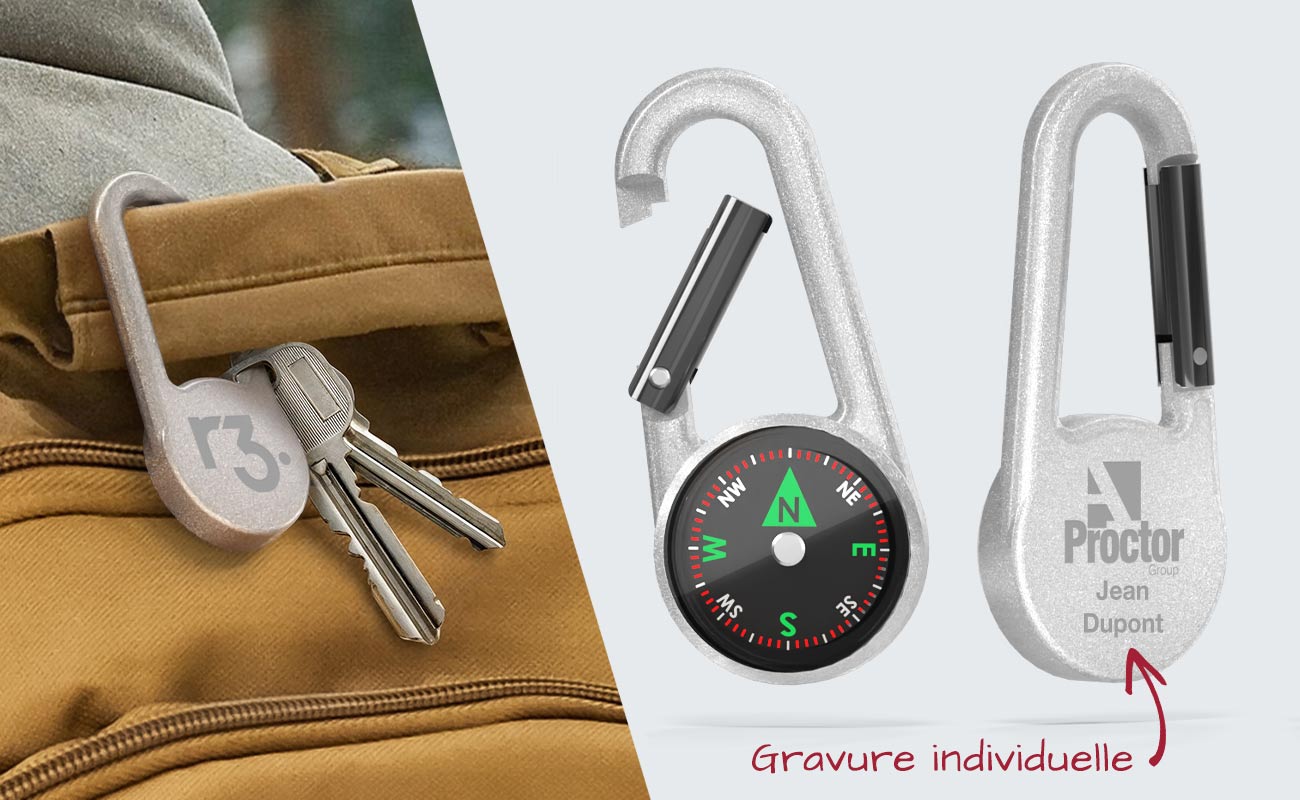 Le mousqueton WayPoint Compass est un porte-clés pratique qui vous accompagne partout. L'aiguille magnétique est suspendue dans de l'huile pour garantir une rotation fluide, et la coque extérieure est en alliage de zinc ; il est également doté d'un fermoir à ressort sécurisé. Au dos du WayPoint se trouve un emplacement dédié à la personnalisation pour mettre en valeur votre logo. Contactez-nous dès aujourd'hui pour connaître nos derniers tarifs, obtenir des échantillons et connaître les délais de livraison express.