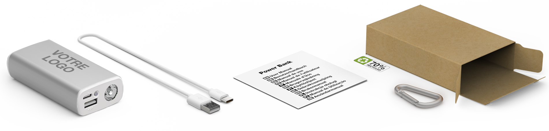 Entrée : 5V/1A, Sortie : 5V/1AType de batterie : Lithium-ion