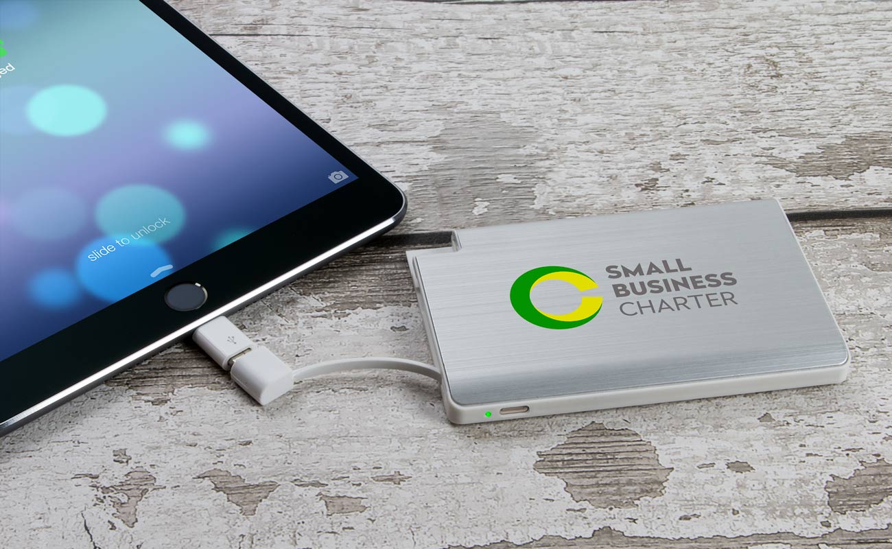 Chargez votre appareil avec style grâce à notre Power Bank Tour. Avec sa finition en cuir souple, le Tour peut avoir votre logo ou message publicitaire imprimés sur les deux côtés. La batterie Tour dispose également d'un câble Micro-USB attaché, un adaptateur Lightning et un adaptateur USB-C, garantissant que tous les principaux types de périphériques soient couverts, y compris les appareils iPhone™, iPad et Android.