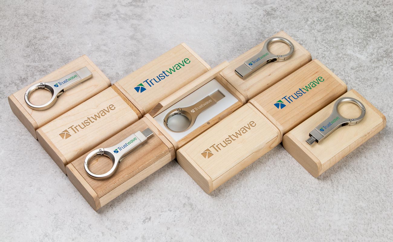 La boîte Maple est un accessoire magnifiquement conçu pour vos clés USB. Le couvercle à charnière est attaché avec une fixation magnétique, et peut être imprimé ou gravé au laser avec votre logo. La boîte est fabriquée à partir de bois d'érable récolté de façon responsable, certifié FSC.Galerie d'images