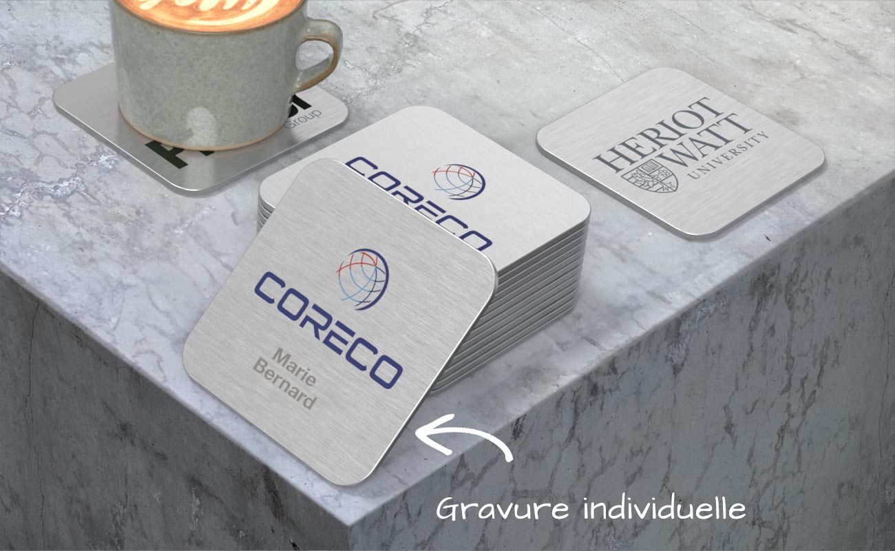 La gravure permet de marquer de manière totalement indélébile vos noms/prénoms. Ce service est idéal pour les clubs sportifs et les écoles, car il permet d'éviter toute confusion potentielle entre les bouteilles d'eau ou les tasses pendant les entraînements ou les compétitions. Chaque nom accompagnera votre logo et votre slogan sur le produit.