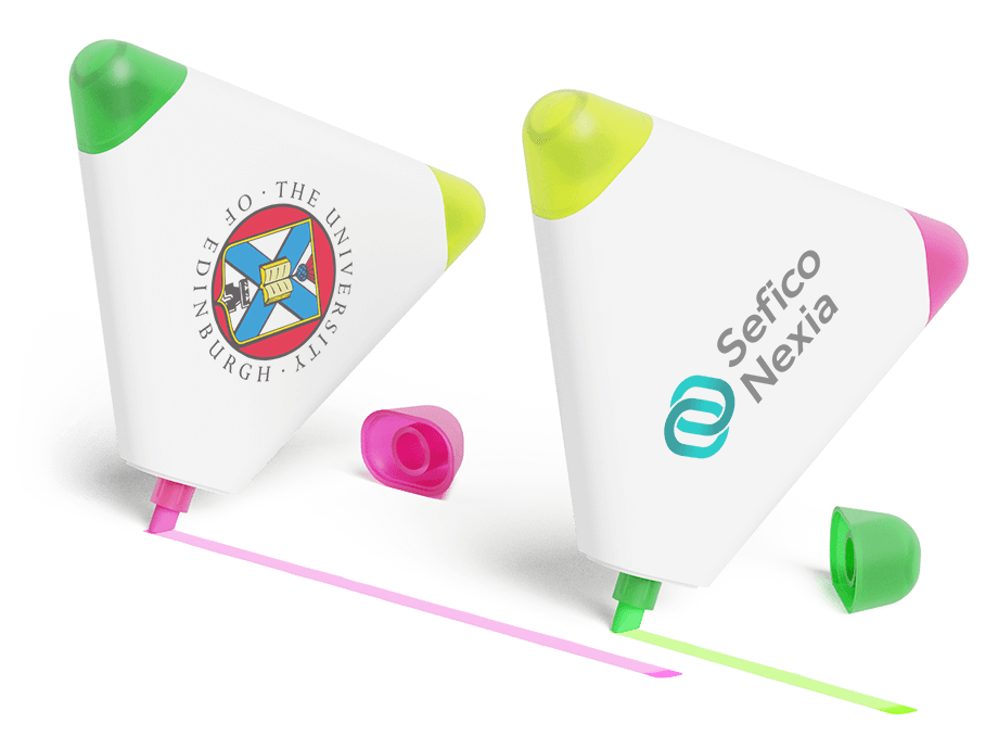 Notre surligneur Triple propose 3 différents surligneurs sur un même modèle - jaune, vert et rose. Sa forme triangulaire attrayante le rend particulièrement utile pour vos cadeaux promotionnels. Nous pouvons ajouter votre logo, votre slogan et bien plus encore sur les deux faces du Triple - vous offrant ainsi une excellente visibilité de votre marque sur un produit qui sera conservé et régulièrement utilisé.
