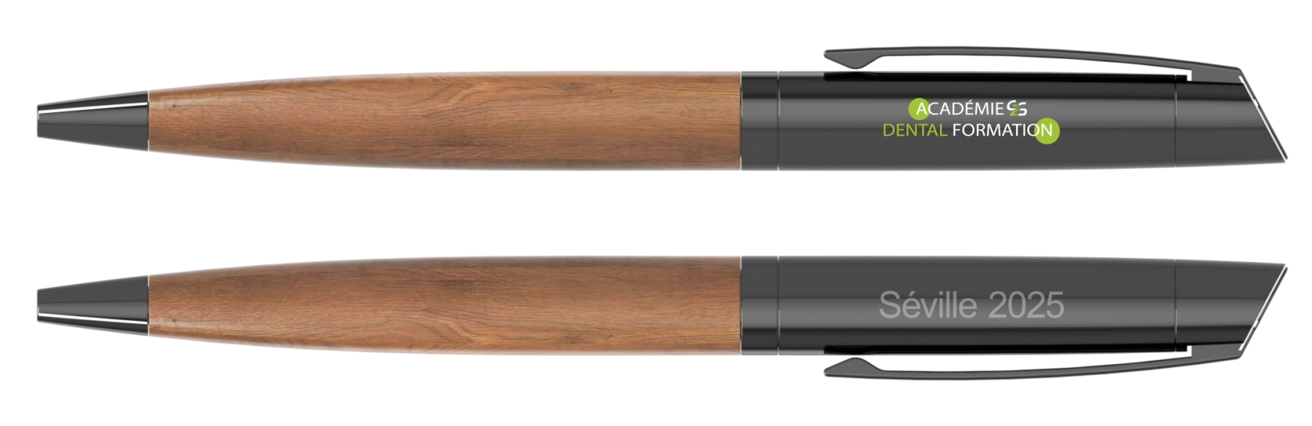 Notre stylo Xylo est fabriqué à partir d'acier inoxydable et de bois, ce qui lui confère une finition étonnante prête à être marquée de votre logo. Le capuchon rotatif à action douce révèle et rétracte le stylo à bille qui offre une expérience d'écriture confortable et fiable. Le clip élégant situé sur le dessus du stylo permet également de l'attacher facilement aux carnets de notes et autres. Contactez-nous dès aujourd'hui pour plus d'informations sur notre processus de marquage, nos délais de livraison express et pour demander des échantillons.