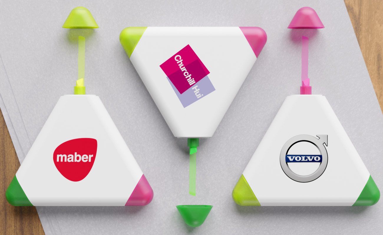 Le modèle Twinkle combine un surligneur multicolore et un hand spinner en un seul produit promotionnel pratique. Les couleurs du surligneur sont le vert, le jaune et le rose qui sont protégés par des couvercles assortis. Le recto et le verso du Twinkle peuvent être imprimés avec votre logo et d'autres détails. Le Twinkle est une idée de cadeau populaire à distribuer lors d'événements, de conférences, de salons ou comme cadeau pour les clients et les employés.