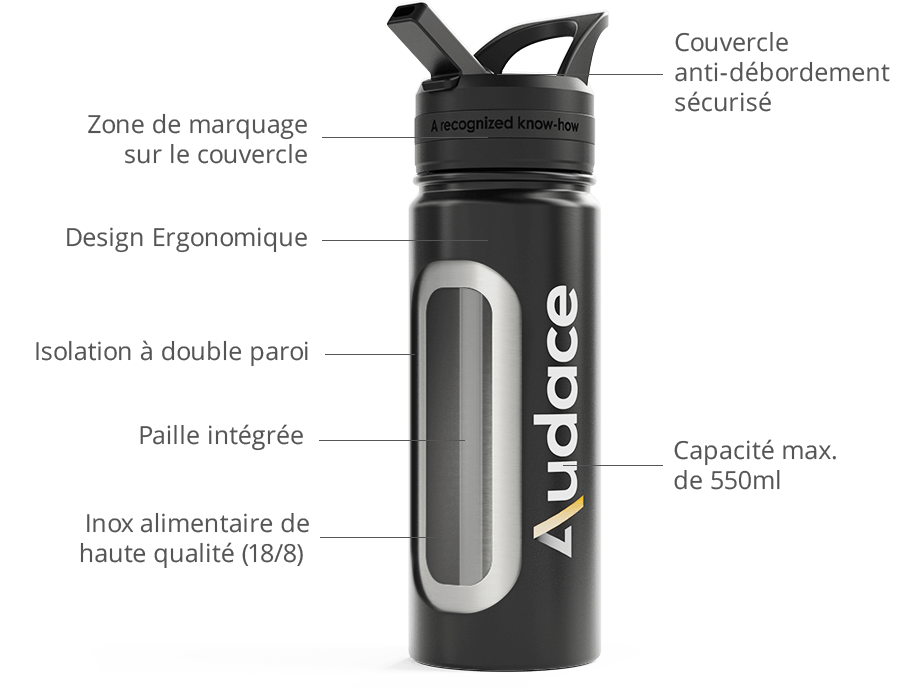 Nous pouvons marquer vos gourdes et tasses d'un visuel exceptionnel qui recouvre l'ensemble du corps de la gourde. Le résultat final est un produit extrêmement attrayant et percutant qui sera utilisé tous les jours et qui vous permettra de faire connaître votre marque de manière fantastique.